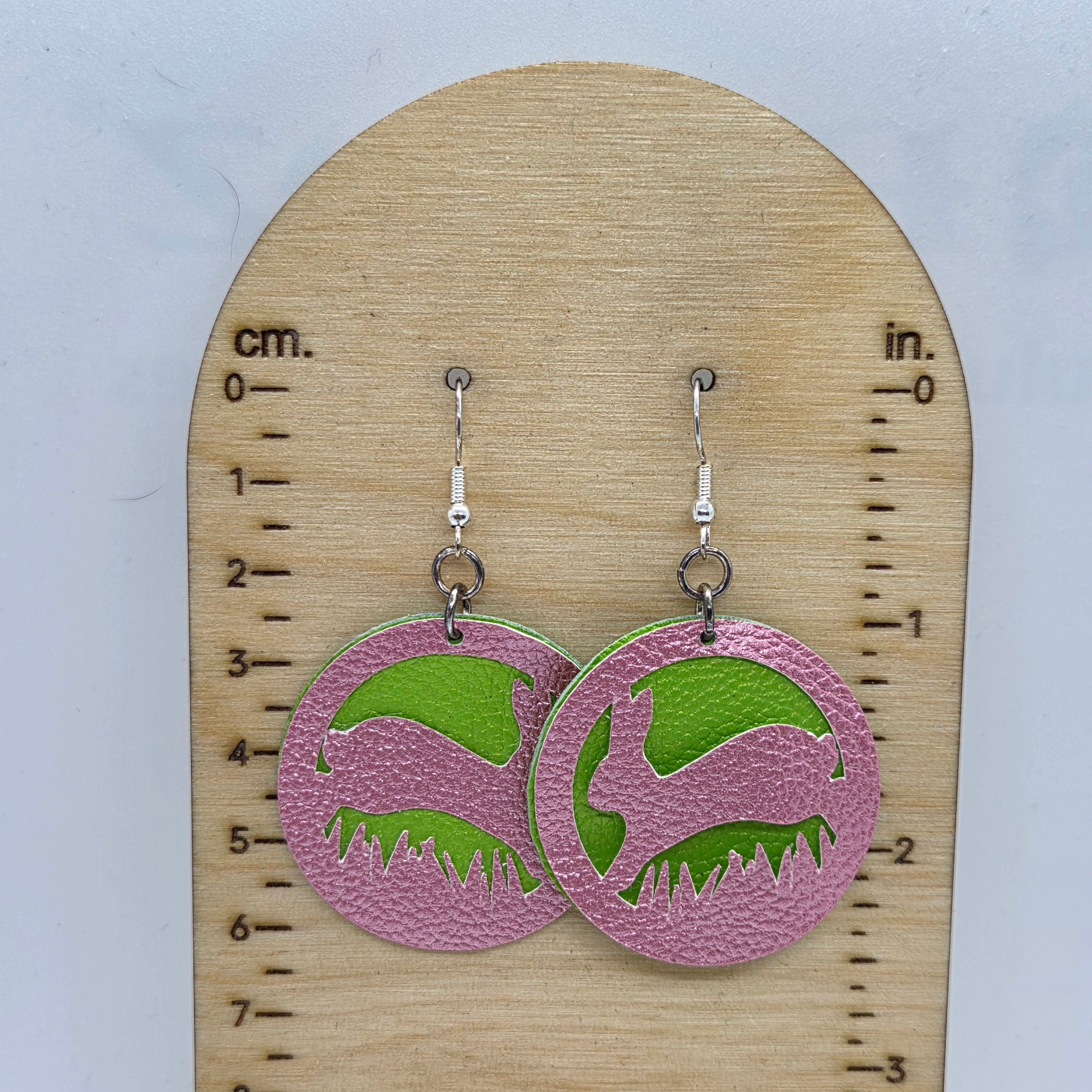 Bunny frolicking in the grass faux leather earrings